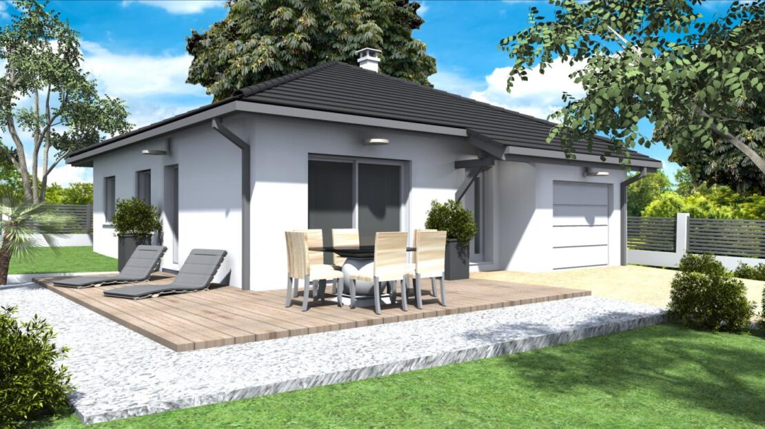 Votre future villa neuve PERSONNALISABLE DE type plain-pied composée d’un bel espace de vie lumineux, de 3 chambres, un cellier, un toilette et d’une salle de bains. Avec garage attenant l’ensemble sur un terrain de 692m2.