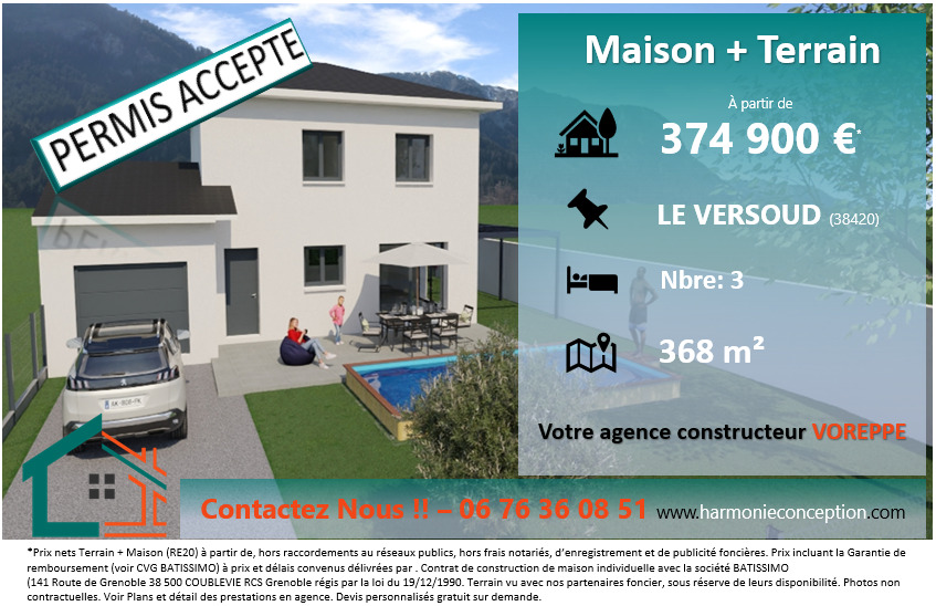 HARMONIE CONCEPTION by BATISSIMO vous propose votre projet de construction sur la commune de LE VERSOUD .