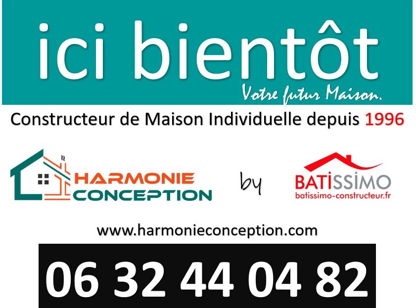 Agence HARMONIE CONCEPTION BATISSIMO VOREPPE. Terrain proposé avec notre partenaire foncier selon disponibilités et autorisation de publicité. Hors droit d’enregistrement et frais de notaire. Maison proposée, avec un contrat de construction de maison individuelle, dans le cadre de la loi du 19/12/1990, (Papiers peints, peintures, revêtement de sol dans les chambres, qui sont chiffrés dans les travaux qui restent à charge du client. Tarif modifiable sans préavis, hors adaptation selon étude de sol à charge client).