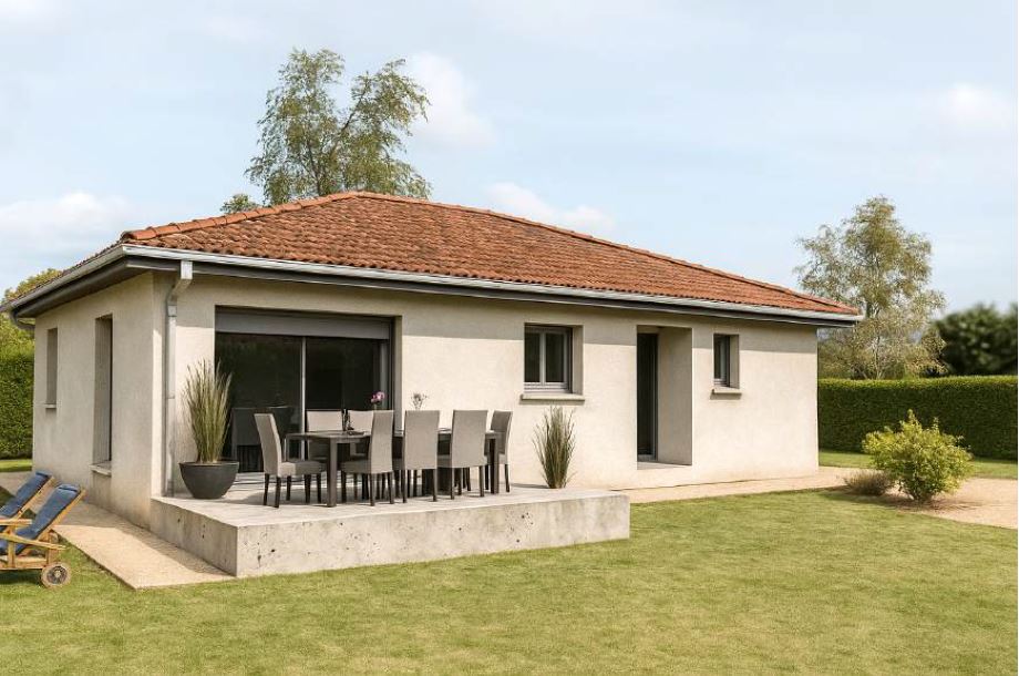 Agence HARMONIE CONCEPTION BATISSIMO VOREPPE. Terrain proposé avec notre partenaire foncier selon disponibilités et autorisation de publicité. Hors droit d’enregistrement et frais de notaire et VRD. Maison proposée, avec un contrat de construction de maison individuelle, dans le cadre de la loi du 19/12/1990, (Hors branchements et raccordements, papiers peints, peintures, revêtement de sol dans les chambres, qui sont chiffrés dans les travaux qui restent à charge du client. Tarif modifiable sans préavis, hors adaptation selon étude de sol à charge client). Photo Non contractuelle.