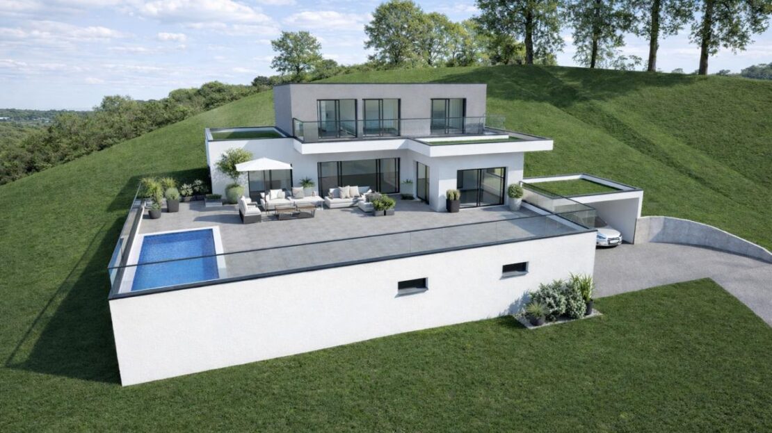 Projet de construction d’une maison individuelle haut de gamme, située dans un environnement calme, sans vis-à-vis et sans possibilité de construction future aux alentours.