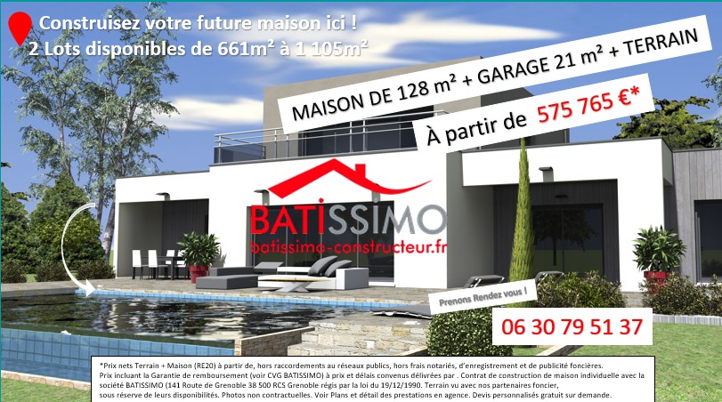 Agence HARMONIE CONCEPTION BATISSIMO VOREPPE. Terrain proposé avec notre partenaire foncier selon disponibilités et autorisation de publicité. Hors droit d’enregistrement et frais de notaire et VRD. Maison proposée, avec un contrat de construction de maison individuelle, dans le cadre de la loi du 19/12/1990, (Hors branchements et raccordements, papiers peints, peintures, revêtement de sol dans les chambres, qui sont chiffrés dans les travaux qui restent à charge du client. Tarif modifiable sans préavis, hors adaptation selon étude de sol à charge client). Photo Non contractuelle.