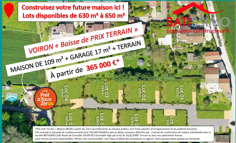 La Commune de VOIRON s’établit dans un cadre de vie privilégié ou vous disposerez de tous les commerces de proximité et infrastructures au quotidien (supermarché, épicerie, boulangerie, station service, médecin). Vous pourrez également profitez d’espaces de vie et d’activités proposés par la ville (parc, bibliothèque, restaurants ) N’attendez plus et prenez contact avec nous pour faire construire la maison de vos rêves.